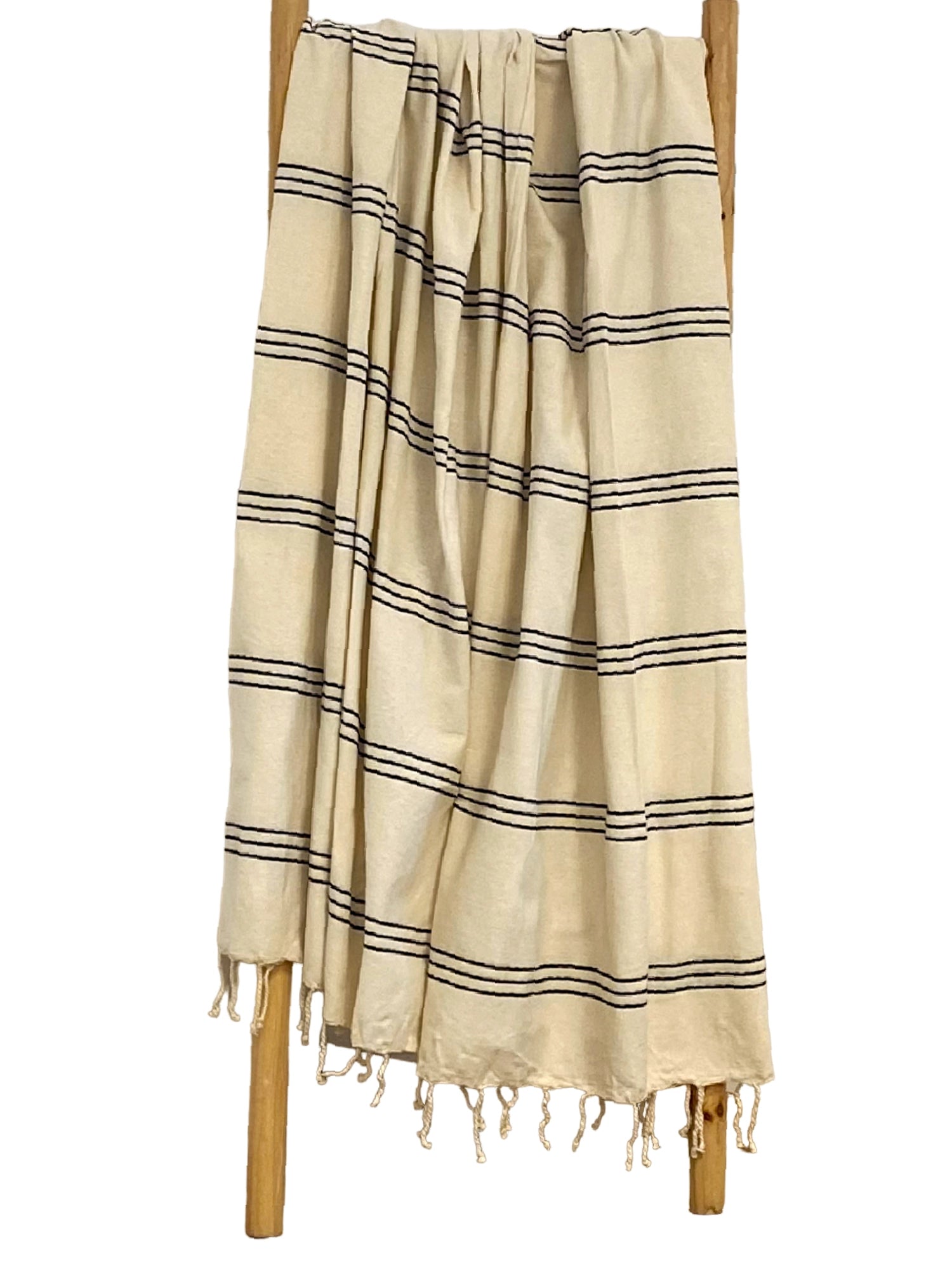 Cette fouta en coloris naturel est très tendance avec ses petites rayures couleur, cette collection est aussi bien adaptée pour homme que pour femme.