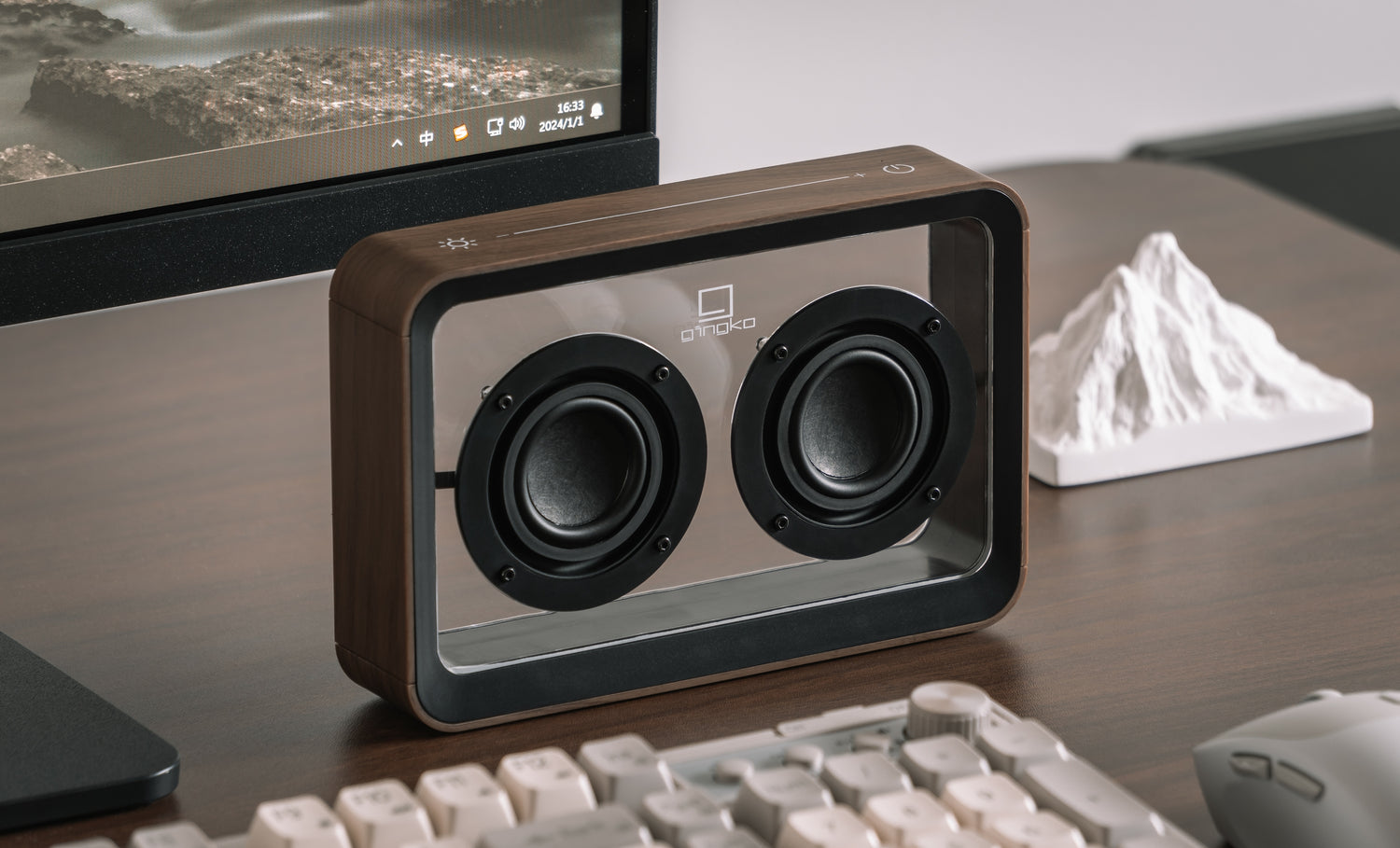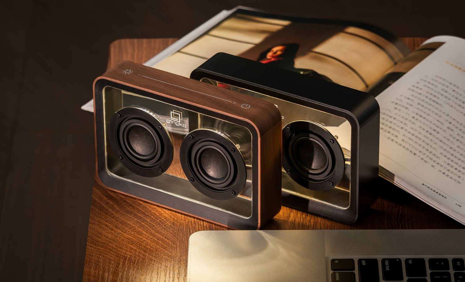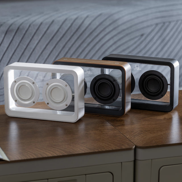 Entrez dans le monde du son de qualité supérieure et de l'esthétique saisissante avec le haut-parleur Bluetooth transparent Mage, une merveille dans le domaine des haut-parleurs Bluetooth. Disponible en deux finitions exquises, noir mat et bois de noyer.