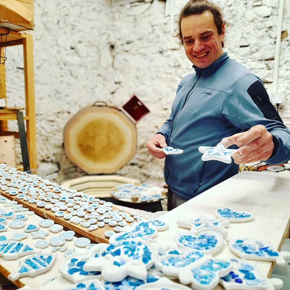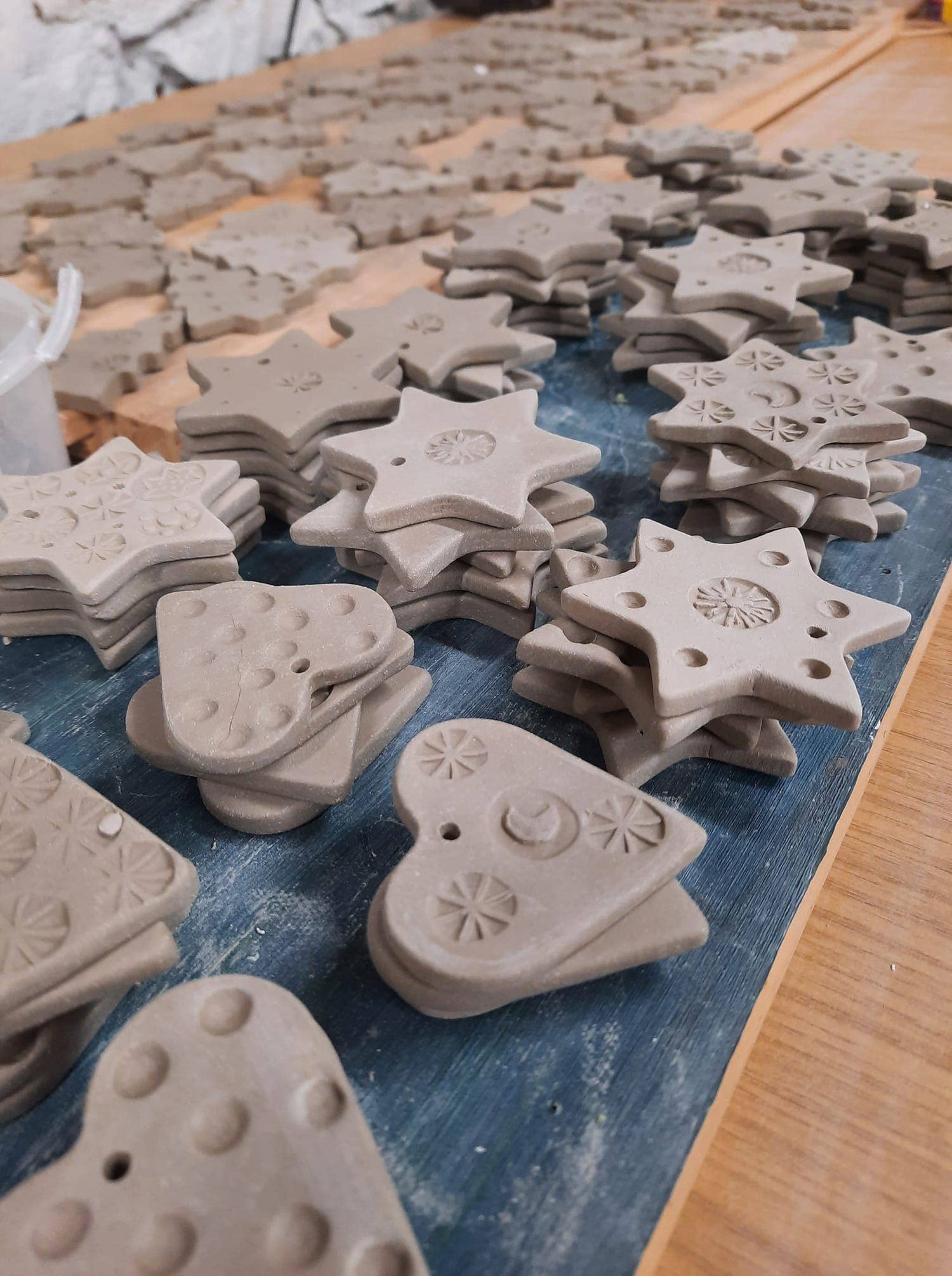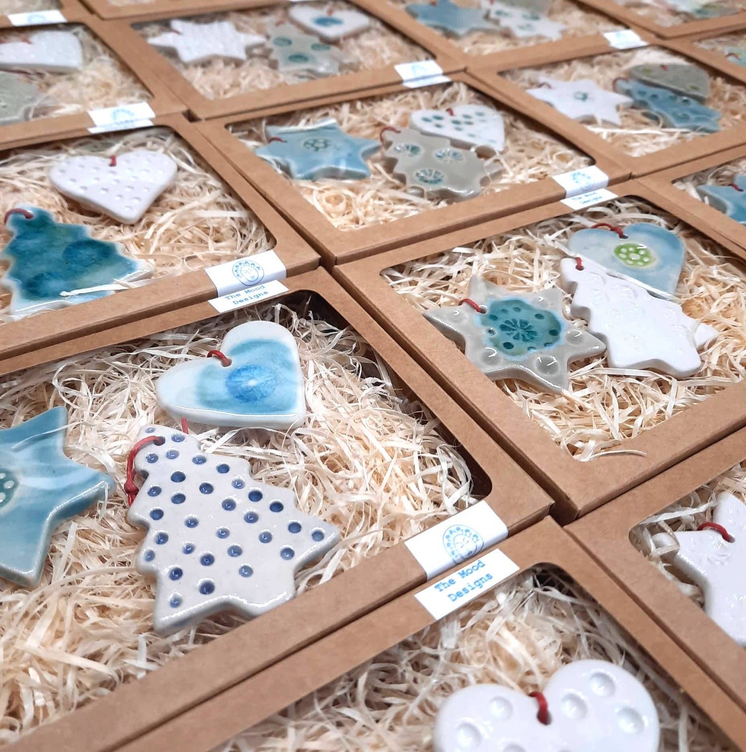 Este juego de adornos navideños de terracota agregará un toque único y artesanal a su árbol de Navidad o decoración navideña. Cada pieza es ligeramente diferente en forma y color, lo que las hace especiales. Los colores de la paleta, incluidos el blanco, el gris, el verde y el azul, combinan perfectamente con el espíritu navideño. La cuerda de algodón encerado adjunta permite colgarlo fácilmente. Crea un ambiente cálido y auténtico con estos magníficos adornos navideños.