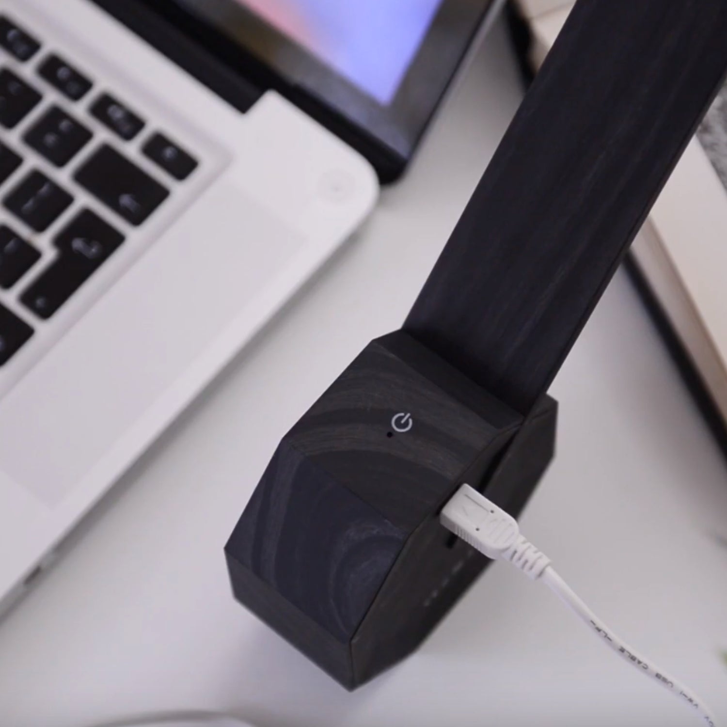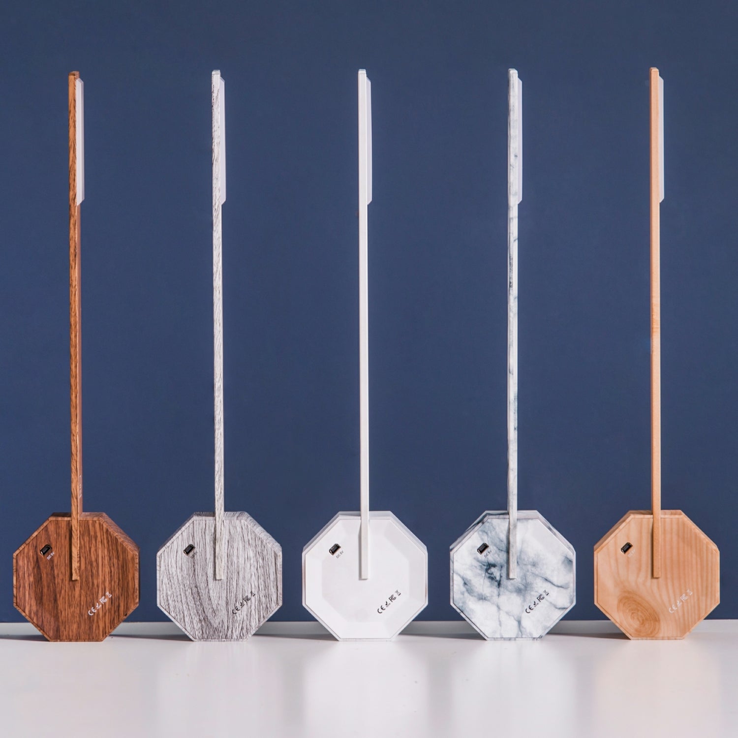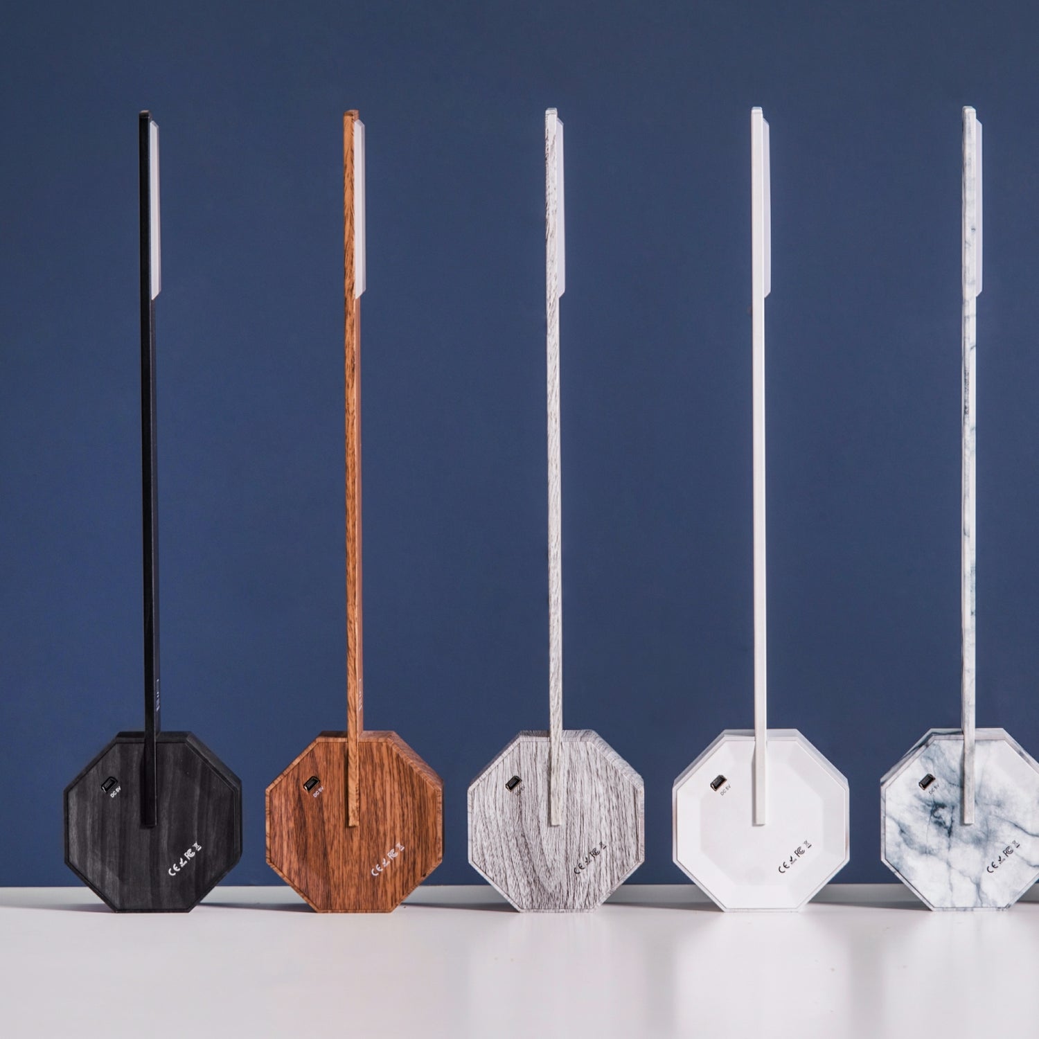 Le point central du design est une base octogonale magnifiquement formée avec finition en bois avec bouton de commande tactile et batterie rechargeable intégrée, ce qui en fait une lampe de bureau totalement sans fil et permet de la positionner sous trois angles différents.